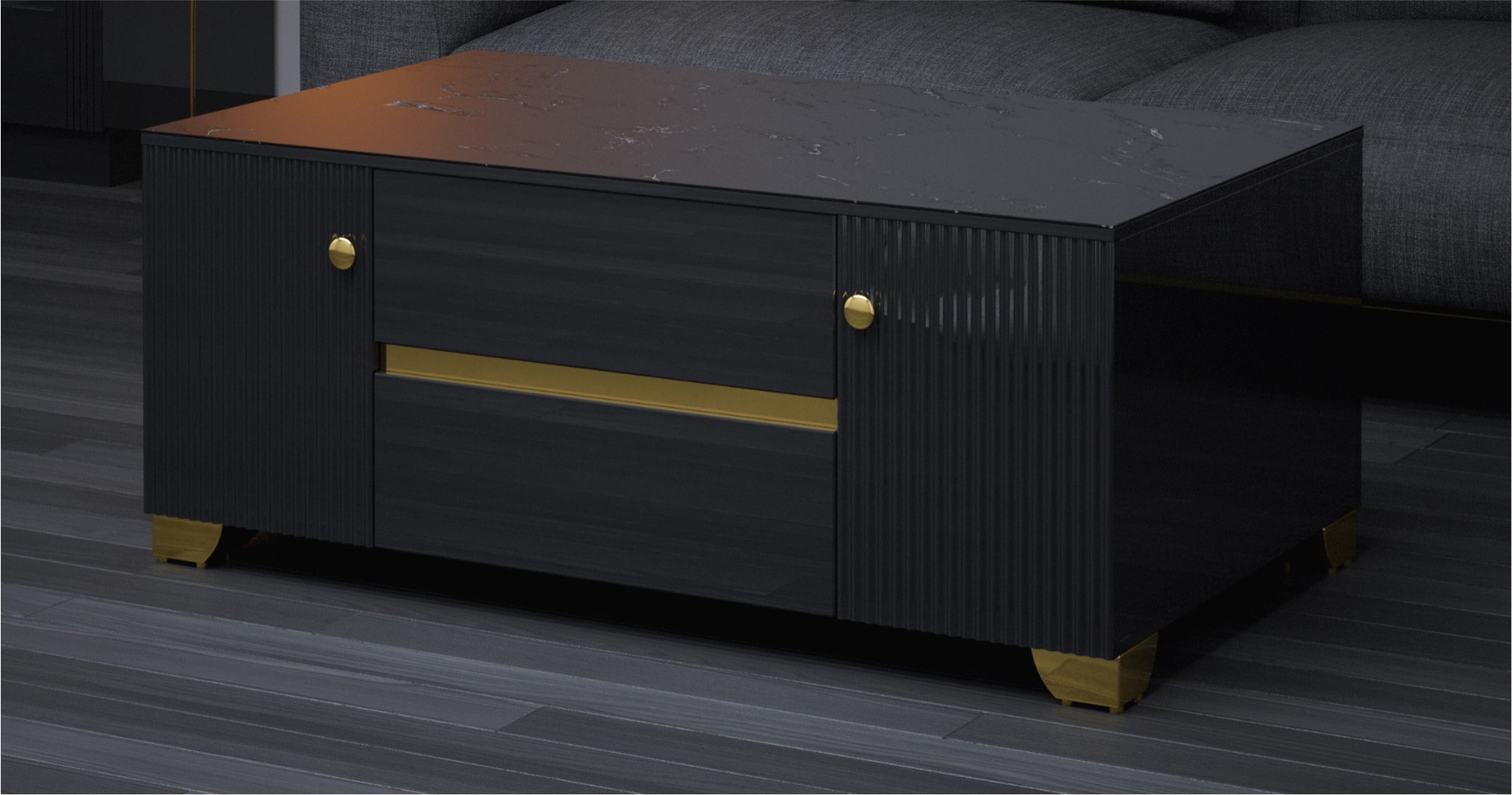 The CT01 Coffee Table is a premium centerpiece that harmonizes industrial-chic textures with high-end architectural finishes. Designed with a durable sintered stone surface and intricate ribbed paneling, this table offers a sophisticated anchor for any modern lounge.